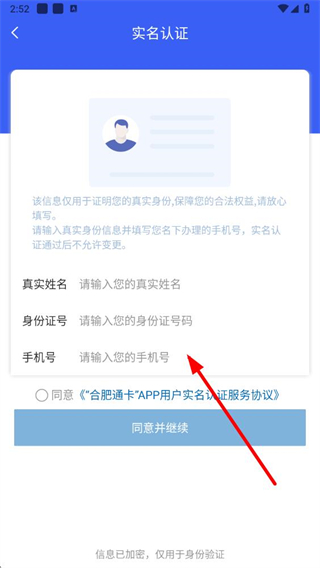 4、在實(shí)名認(rèn)證頁面,輸入個(gè)人信息后,點(diǎn)擊同意并繼續(xù)按鈕,按照提示完成支付寶授權(quán)操作即可完成認(rèn)證。
