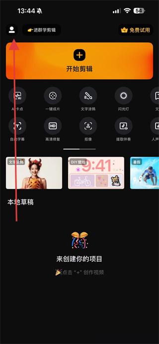 1、打開小影APP,點(diǎn)擊左上角的個(gè)人圖標(biāo)。