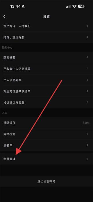3、在設(shè)置頁面,點(diǎn)擊賬號(hào)管理選項(xiàng)。
