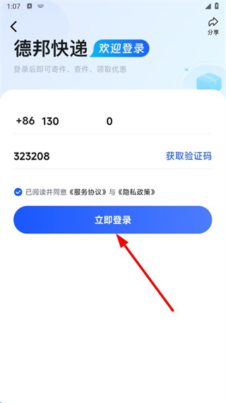 4、勾選已閱讀并同意服務協(xié)議與隱私政策,點擊立即登錄按鈕,若為新用戶則自動完成注冊并登錄。