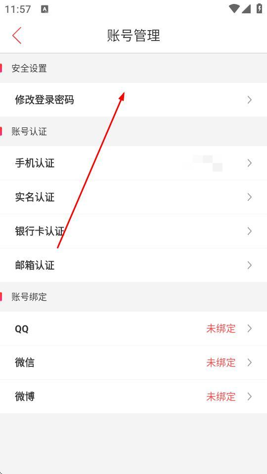 3、在賬號管理頁面中,點擊修改登錄密碼選項。