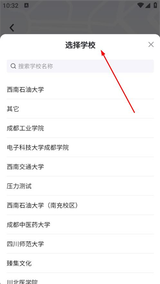 4、在選擇學(xué)校頁面搜索,并選擇自己的學(xué)校。