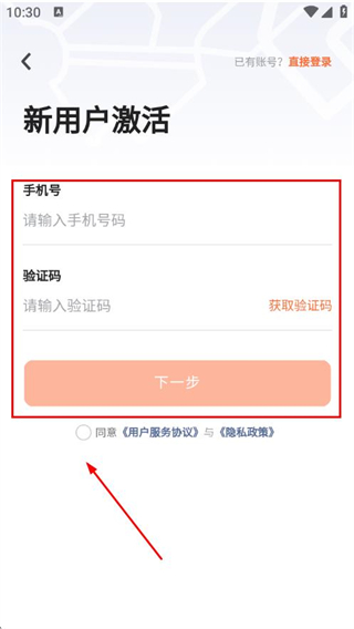 3、輸入手機(jī)號(hào)碼、驗(yàn)證碼,勾選協(xié)議,點(diǎn)擊下一步。