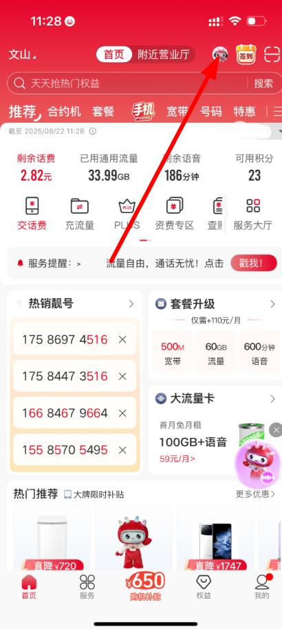 1、打開(kāi)中國(guó)聯(lián)通應(yīng)用,在首頁(yè)頂部區(qū)域,找到并點(diǎn)擊右上角的客服頭像圖標(biāo),進(jìn)入客服交互頁(yè)面。