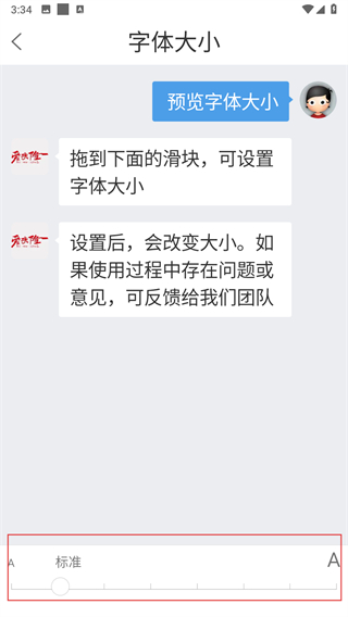 4、在字體大小設(shè)置頁面拖動底部的滑塊,可調(diào)整字體大小。